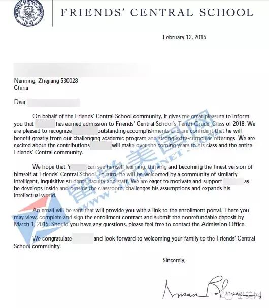 頂尖走讀高中申請,留學(xué)美國網(wǎng)拿實力說話!下面是該同學(xué)錄取信。