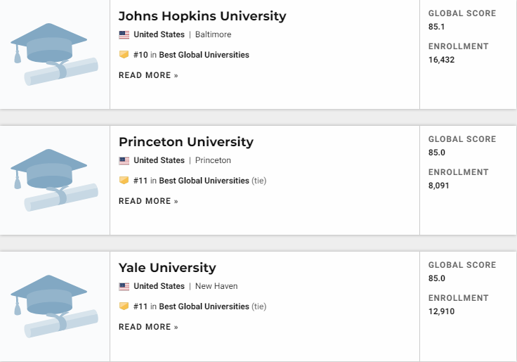 小編看了名單之后,發(fā)現(xiàn)約翰霍普金斯大學(xué)擠進(jìn)前十名,而普林斯頓大學(xué)跌至11位,與耶魯大學(xué)并列。清華大學(xué)躋身世界前30,位列28,北京大學(xué)則排名第51,上海交通大學(xué)世界排名122。
