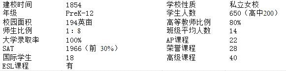 100%的畢業(yè)生順利升入大學(xué):普林斯頓大學(xué)、哈佛大學(xué)、耶魯大學(xué)、哥倫比亞大學(xué)、麻省理工學(xué)院、賓夕法尼亞大學(xué)、布朗大學(xué)、康奈爾大學(xué)、萊斯大學(xué)、圣母大學(xué) 。