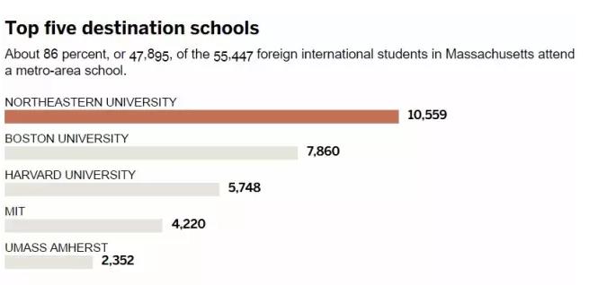 根據(jù)全美調(diào)查來看,去年涌入波士頓地區(qū)的國際學(xué)生數(shù)量再次爆表,其中尤以Northeastern University和Boston University為甚。