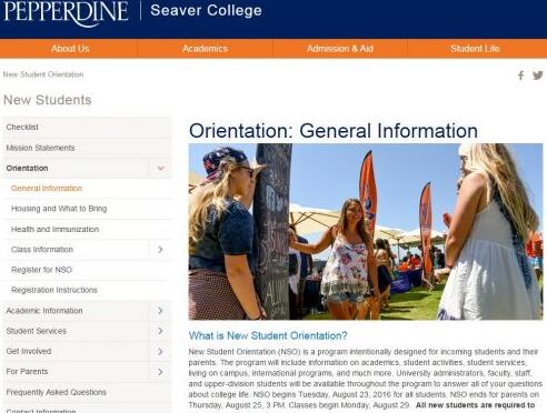 佩珀代因大學(xué)(Pepperdine University)官網(wǎng)的入學(xué)培訓(xùn)介紹