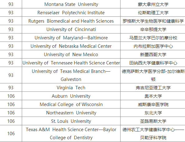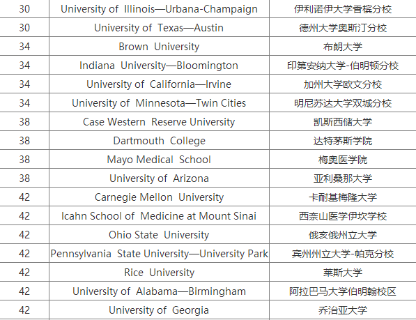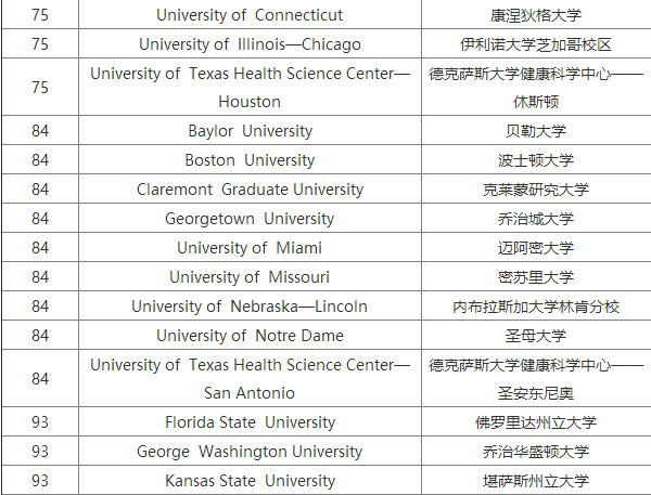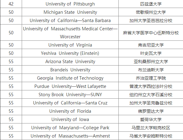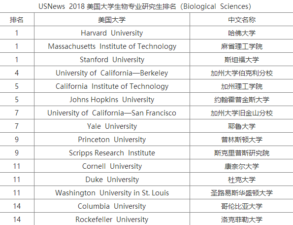 2018USNews美國大學(xué)生物專業(yè)研究生排名Top100