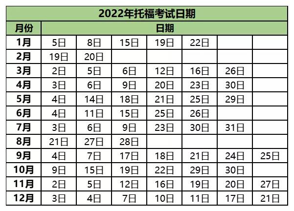 2022美國(guó)托??荚嚂r(shí)間匯總
