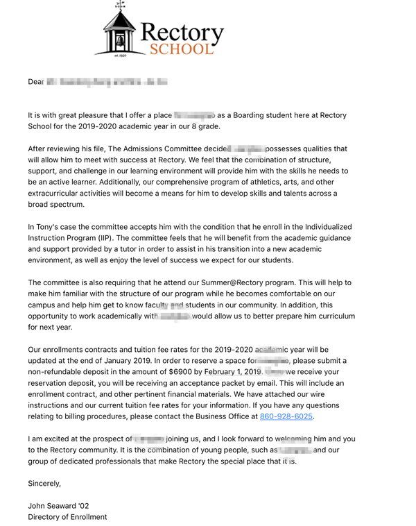 成功案例:恭喜S同學(xué)喜獲瑞克特瑞中學(xué)Rectory school錄取offer