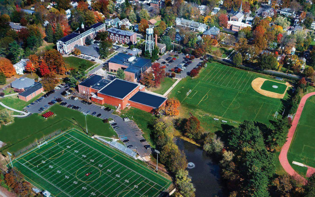 學(xué)校設(shè)施齊全,有科學(xué)實(shí)驗(yàn)室,用于油畫(huà)、素描、攝影、制作陶器的藝術(shù)工作室,能容納170人的演講中心,暗室,單獨(dú)的音樂(lè)排練室,錄音室,藝術(shù)畫(huà)廊,學(xué)生中心,圖書(shū)館有在線(xiàn)參考書(shū)目數(shù)據(jù)庫(kù)、雜志、國(guó)際報(bào)紙,三個(gè)計(jì)算機(jī)中心。棒球場(chǎng),曲棍球場(chǎng),長(zhǎng)曲棍球,英式足球,壘球,用于跳高、跳遠(yuǎn)、標(biāo)槍、鐵餅、推鉛球的場(chǎng)地,五個(gè)網(wǎng)球場(chǎng),體育館里設(shè)有兩個(gè)籃球場(chǎng)地,游泳池,健身中心等。