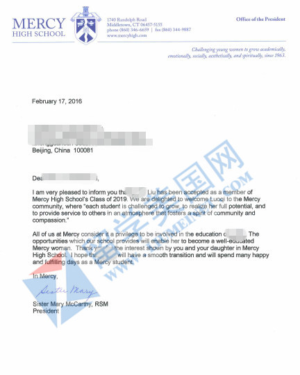 恭喜LLQ獲東部梅西中學錄取!梅西高中是東部康州的一所大學預備女校,學校設(shè)施先進,環(huán)境優(yōu)美,是當?shù)睾苤囊凰痈咧?,大學升學率99%,學校地理位置很好,性價比非常高,家長反饋好。