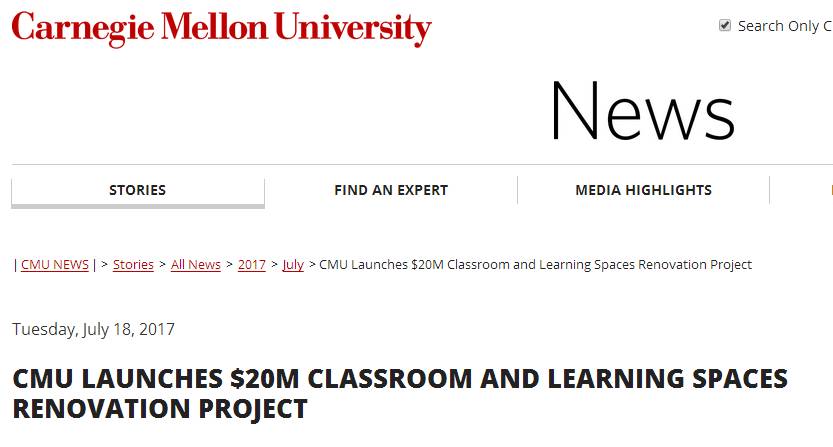 最近,卡內(nèi)基梅隆大學官網(wǎng)公布了一個重大新聞,學校在未來幾年要進行全面升級啦!