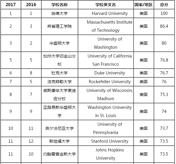 2017年USNEWS美國微生物學專業(yè)世界大學排名