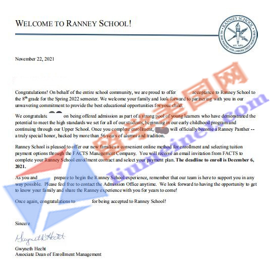 - 恭喜留美網(wǎng)Y同學(xué)收獲西北中學(xué)錄取offe