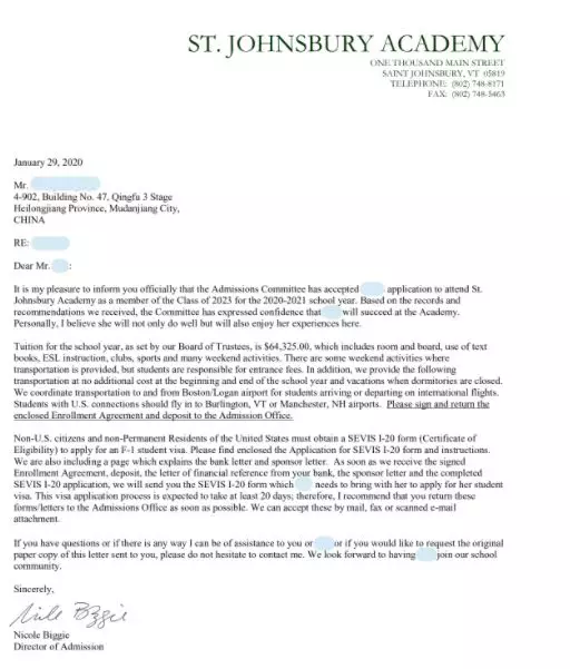 接受8-11年級國際學生,不接受12年級申請者。根據(jù)學生的成績單,推薦信,標化成績SSAT和托福等綜合評估錄取,9年級以下學生可以提供小托福。面試決定最終的錄取。