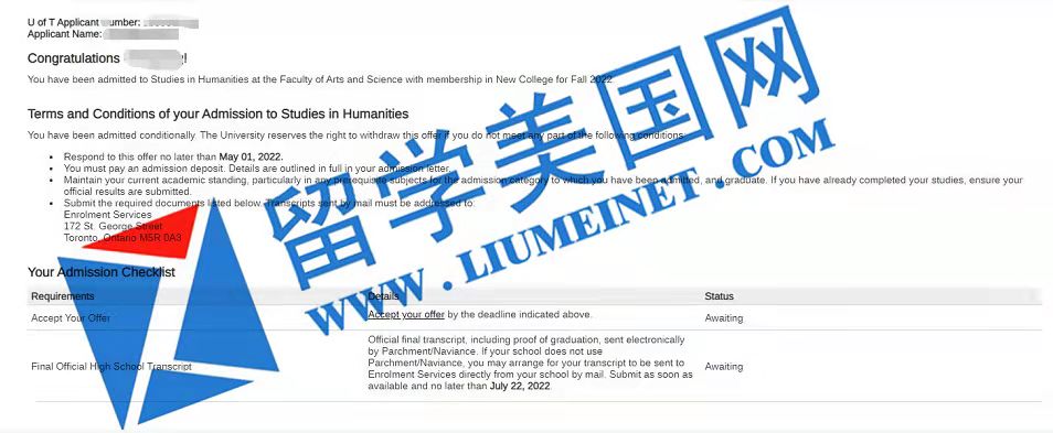 錄取捷報!恭喜留美網(wǎng)Y同學(xué)錄取到多倫多大學(xué)University of Toronto~