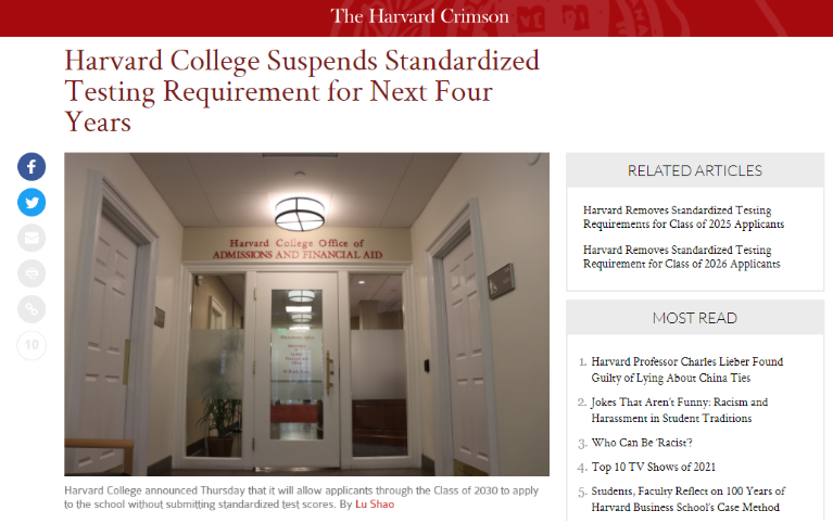 甚至哈佛大學(xué)早就表示未來(lái)4年都不再需要提交標(biāo)化成績(jī),距離永久取消標(biāo)化只有一步之遙。