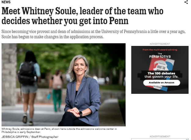 近日,《費(fèi)城問(wèn)詢者報(bào)》(The Philadelphia Inquirer) 采訪了賓夕法尼亞大學(xué)現(xiàn)任招生辦主任Whitney Soule,她就目前賓大的招生工作、錄取標(biāo)準(zhǔn)以及申請(qǐng)材料變化等做出了回復(fù)。今天整理出此次采訪內(nèi)容,希望對(duì)大家了解賓大招生、未來(lái)申請(qǐng)賓大有所幫助。