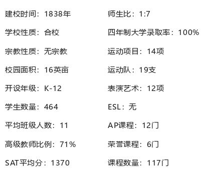 【特色項目】學校的戶外學習項目、計算機項目和全球研究項目非常有特色。