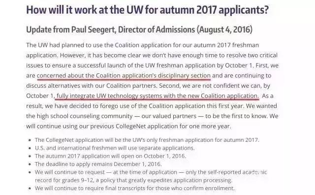 問題二:并沒有信心在10月1日之前完全整合UW學(xué)校系統(tǒng)和聯(lián)盟申請系統(tǒng)。