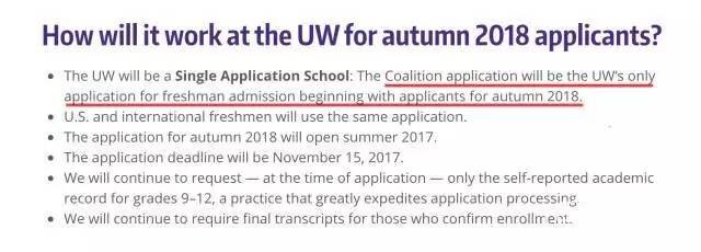在網(wǎng)頁的末尾,華盛頓大學(xué)同時(shí)也發(fā)表聲明說:對于2018年秋季的申請者來說,CAAS申請系統(tǒng)將會(huì)成為他們唯一接受的申請方式。
