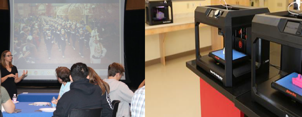 學(xué)生在工作室里利用3-D打印機(jī)、一體化學(xué)習(xí)智能板、智能桌和演示劇院等高科技教學(xué)設(shè)備進(jìn)行學(xué)習(xí)互動(dòng),鍛煉合作創(chuàng)新的能力。