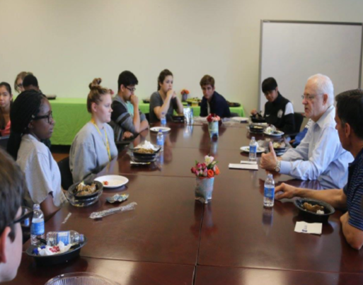定期邀請(qǐng)商業(yè)和社區(qū)精英跟學(xué)生互動(dòng)交流講演。該演講在創(chuàng)新實(shí)驗(yàn)室進(jìn)行