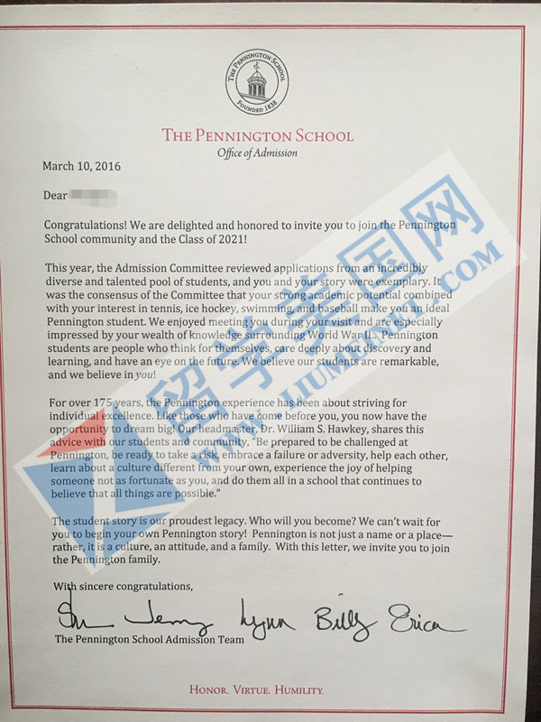 恭喜留美網(wǎng)同學(xué)獲得頂尖高中The Pennington School錄取