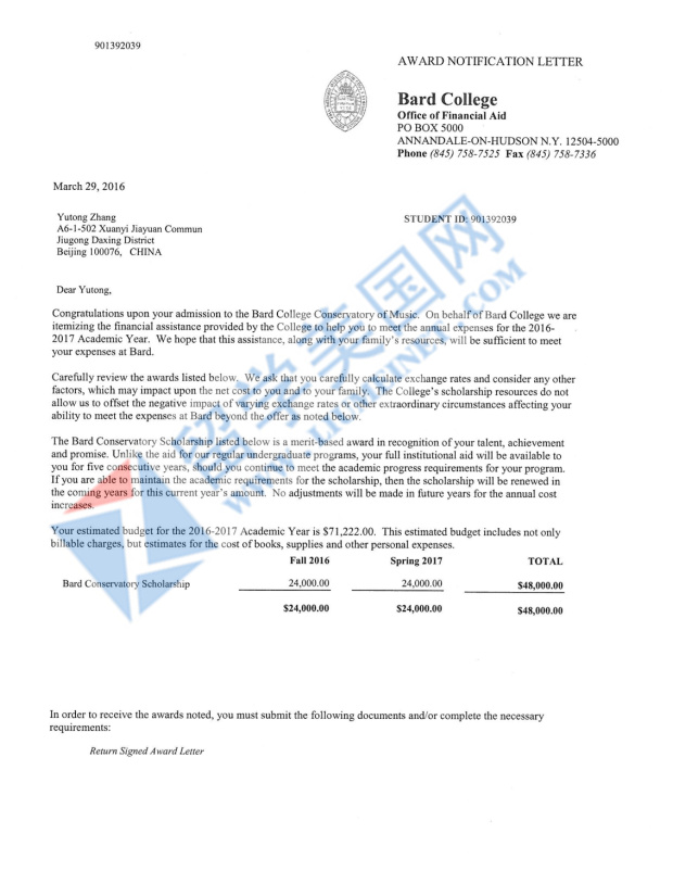 恭賀留學(xué)美國網(wǎng)學(xué)生被巴德學(xué)院Bard College錄取。
