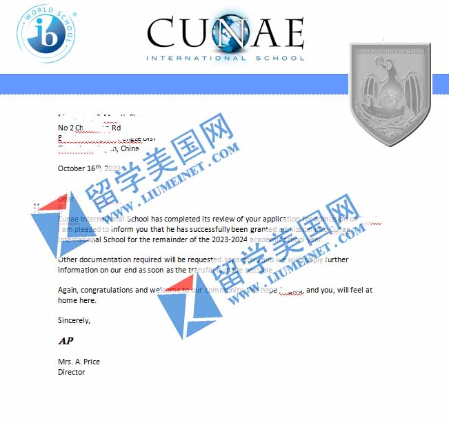 【錄取喜報】恭喜留美網(wǎng)學子F同學斬獲Cunae International School錄取offer