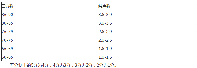 一般來講,百分制中的90分以上可視為4分,80分以上 為3分,70分以上為2分,60分以上為1分,可以對照下表。