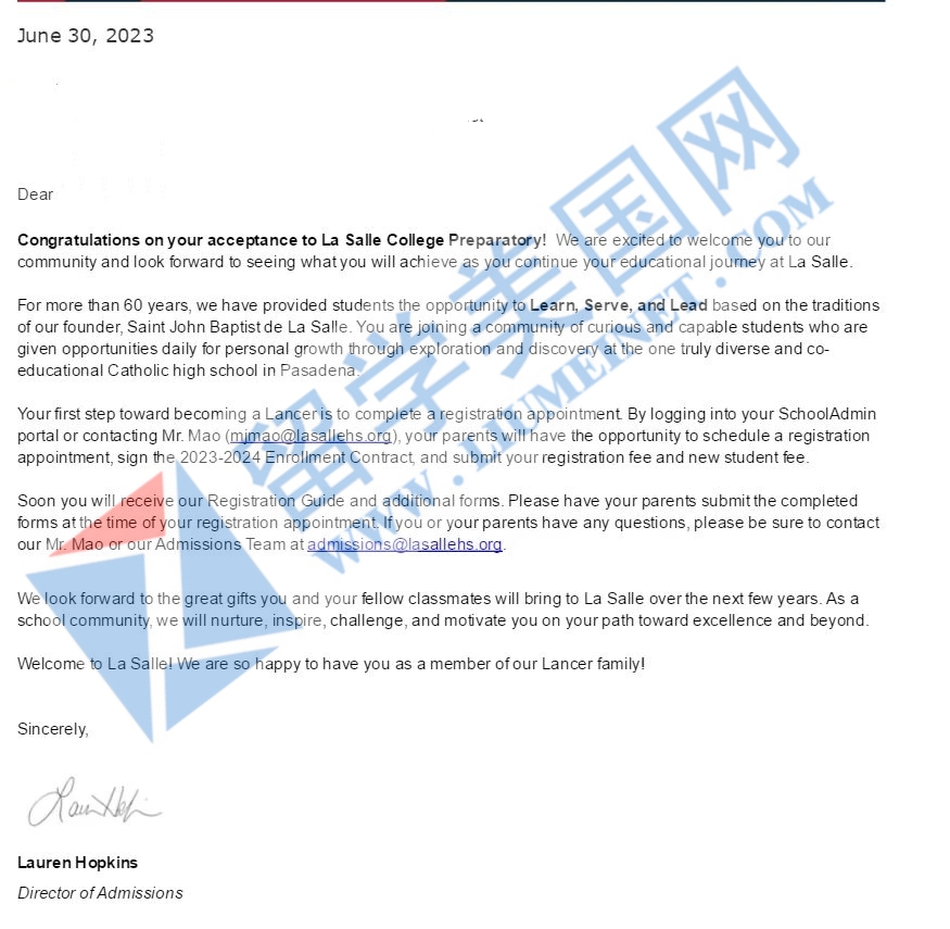 - 恭喜留美網(wǎng)Y同學(xué)收獲查爾斯懷特中學(xué)錄取o