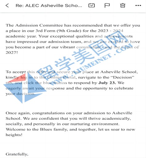 美高寄宿初中補(bǔ)錄成功案例展示: