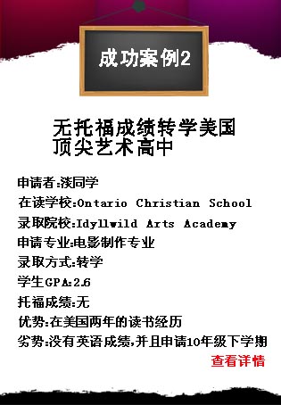 2\五所知名高中全部錄取,真金不怕火煉,家長訪問學(xué)校獲好評。 3\兩年和兩個星期的差距:找對留學(xué)機構(gòu)很重要。 5\美國高中兩次轉(zhuǎn)學(xué)仍收獲著名高中OFFER! 6\美國高中轉(zhuǎn)學(xué)11年級,一周獲美國頂尖寄宿高中OFFER!