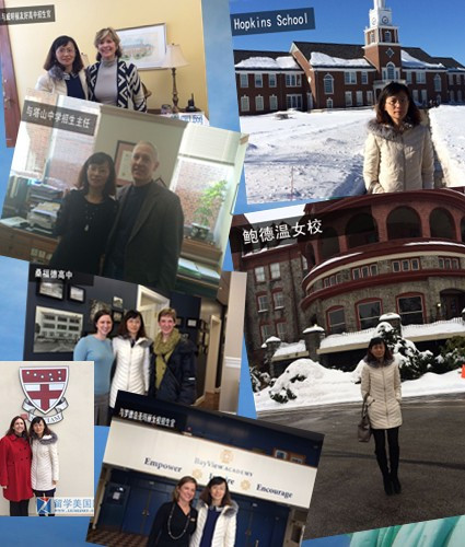 《《右圖是留學(xué)美國網(wǎng)總監(jiān)石老師與部分合作高中招生官合影