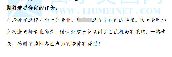 來自于留美網(wǎng)家長(zhǎng)的反饋 感恩你們的信任