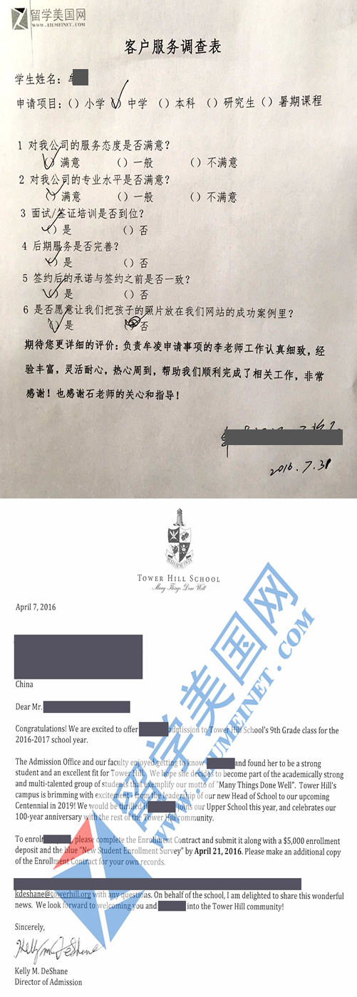 ML同學的滿意評價表和費城頂級高中塔山中學錄取offer展示 【學??疾煸斍椤?/a>