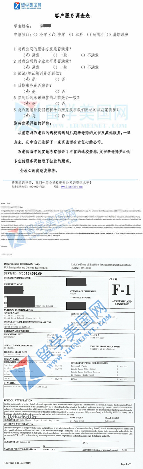 LYD同學的滿意評價表和首府牛校弗林特山中學錄取offer展示 【學校考察詳情】
