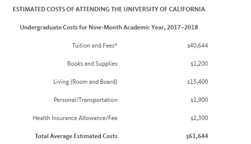 (加州大學官網(wǎng)上給的國際生預估費用,約6.2萬美元九個月)