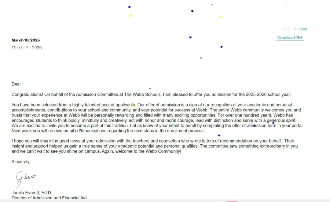 【錄取喜報(bào)】恭喜留美網(wǎng)學(xué)子W同學(xué)斬獲加州韋伯中學(xué)錄取offer