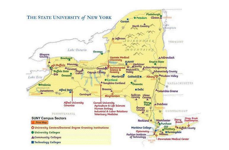 招生學(xué)校:紐約州立大學(xué)系統(tǒng)(SUNY)各個分校