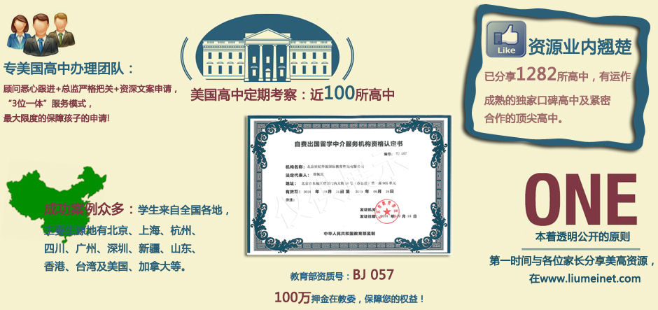 4、加州頂尖貴族高中,中等規(guī)模,關(guān)注度高,留美網(wǎng)學(xué)生為該校第一位大陸學(xué)生!
