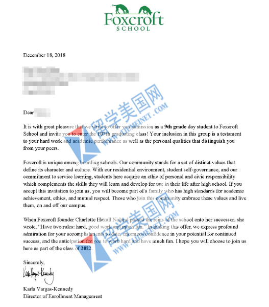 恭喜留美網(wǎng)同學(xué)獲得優(yōu)質(zhì)寄宿女校--??怂箍肆_夫特學(xué)院(Foxcroft School)錄取,微信咨詢:liumeinet2014