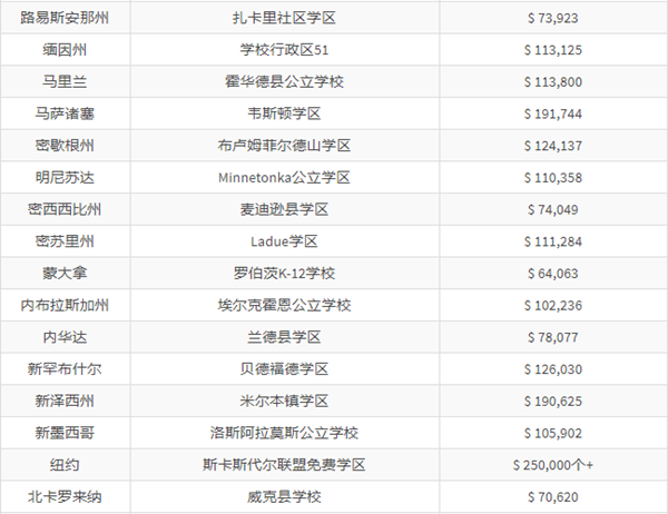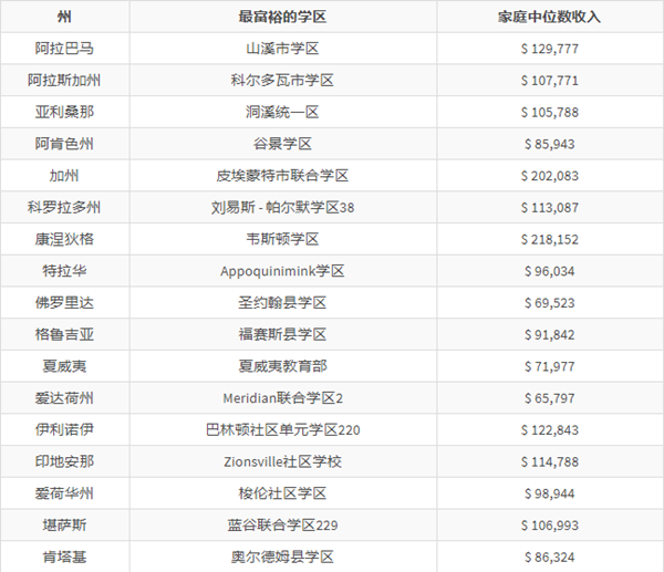 以下是美國(guó)各大州最富有的學(xué)區(qū):